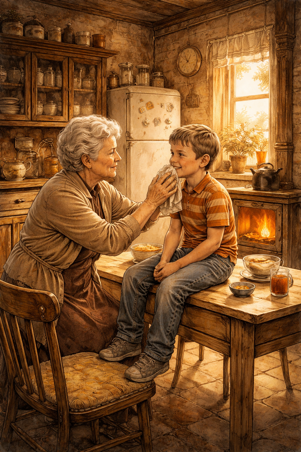 Les soirées étaient tendres : repas chaud, un peu de télévision, blotti dans le creux des jambes de sa grand-mère sur le divan. Il s’y endormait souvent, elle le portait ou le guidait jusqu’à son lit.